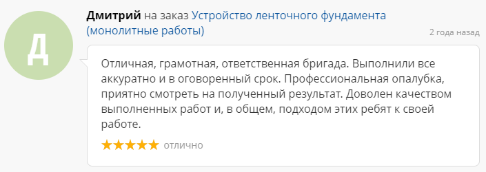 Выполнили все аккуратно и в оговоренный срок. Профессиональная опалубка, приятно смотреть на полученный результат. Доволен качеством выполненных работ и, в общем, подходом этих ребят к своей работе.
